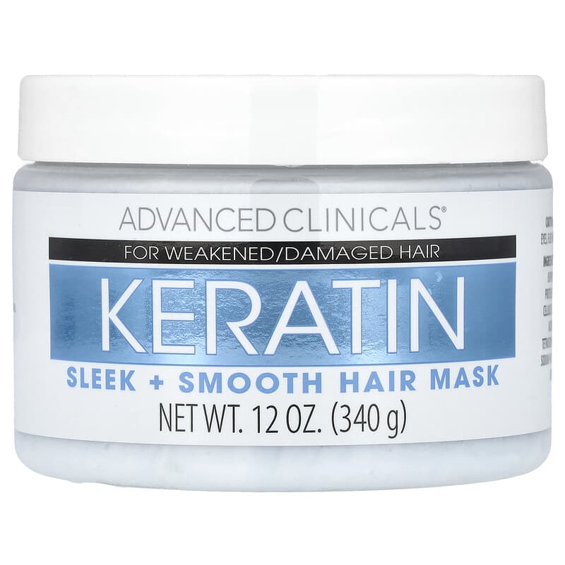Mặt nạ tóc Keratin Sleek Smooth của Advanced Clinicals, 12 oz (340 g) là một mặt nạ dưỡng tóc chuyên sâu được thiết kế để làm mượt, phục hồi và bảo vệ tóc hư tổn. Sản phẩm này chứa keratin, một protein tự nhiên giúp củng cố cấu trúc tóc, giảm xù rối và tăng cường độ bóng mượt. Nó phù hợp cho mọi loại tóc, đặc biệt là tóc khô, hư tổn do nhiệt hoặc hóa chất. Mặt nạ này dễ dàng sử dụng, chỉ cần thoa đều lên tóc ướt sạch, để trong 3-5 phút rồi xả sạch, mang lại cảm giác mềm mại và dễ chải ngay lập tức.