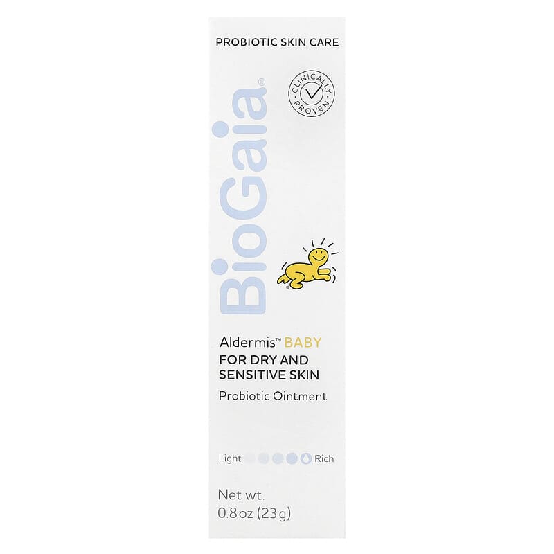 Biogaia Aldermis Baby Probiotic Ointment for Dry and Sensitive Skin, 0.8 oz (23 g) là một loại thuốc mỡ được thiết kế đặc biệt để chăm sóc làn da khô và nhạy cảm của trẻ sơ sinh và trẻ nhỏ. Sản phẩm này kết hợp các thành phần tự nhiên và công nghệ probiotic tiên tiến để cung cấp sự dịu nhẹ và bảo vệ tối ưu cho làn da mỏng manh.