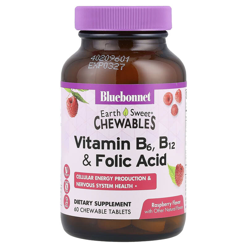 Sản phẩm: Bluebonnet Nutrition Earth Sweet Chewables Vitamin B6, B12, Folic Acid – Hương Raspberry, 60 viên nhai