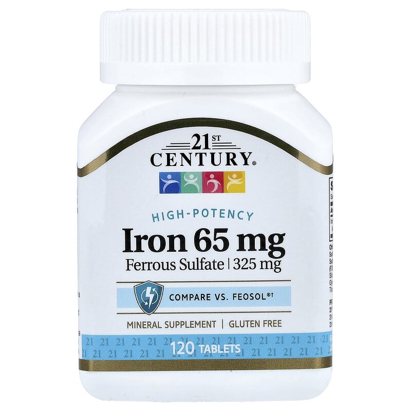 21st Century Iron 65 mg là một chất bổ sung sắt cung cấp 65 mg sắt nguyên tố từ sắt sunfat. Sắt là một khoáng chất thiết yếu hỗ trợ sản xuất huyết sắc tố và vận chuyển oxy trong cơ thể. Sản phẩm này được thiết kế để hỗ trợ mức năng lượng và sức khỏe tổng thể.