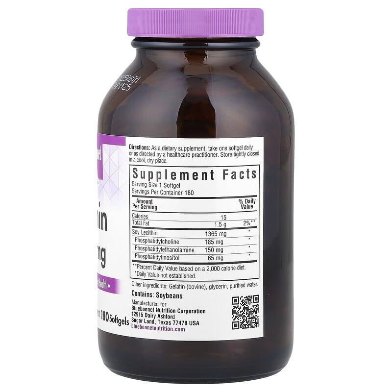 Bluebonnet Nutrition Lecithin 180 Softgels là thực phẩm bổ sung lecithin chiết xuất từ dầu đậu nành không biến đổi gen (non-GMO). Lecithin là một phospholipid tự nhiên có trong cơ thể, đóng vai trò quan trọng trong cấu trúc màng tế bào, chức năng thần kinh và chuyển hóa chất béo. Sản phẩm được sản xuất dưới dạng viên nang mềm, dễ nuốt, mỗi viên chứa 1200 mg lecithin. Lecithin thường được sử dụng để hỗ trợ sức khỏe tim mạch, chức năng gan, trí nhớ và hệ thần kinh.