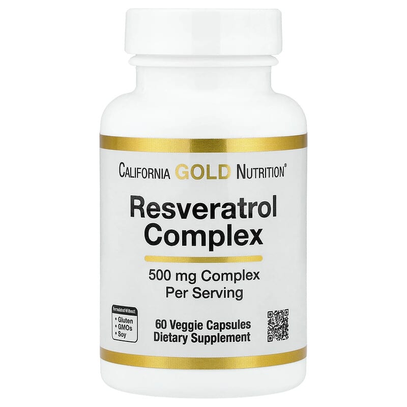 California Gold Nutrition, Resveratrol Complex with Grape Seed Extract, Red Wine Extract and Trans-Resveratrol, 60 Veggie Capsules